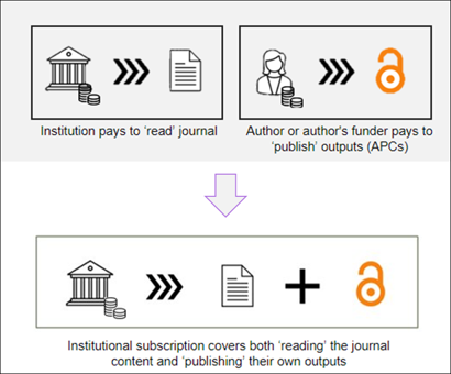 転換契約: "read"と"publish"を含むプロバイダーとの契約("Transformative agreement"タイプのライセンスとして提示)。