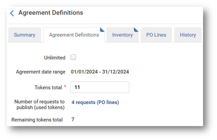- そのライセンスに利用可能なトークンがある場合、POラインは「無料(no charge)」 として作成します。