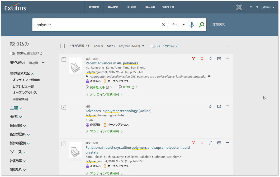Primo VE(ウェブスケールディスカバリーサービス)は