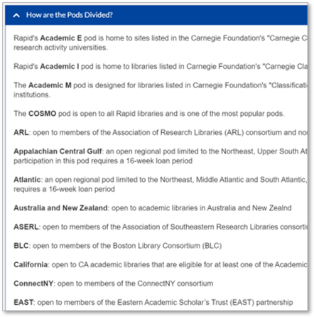 • PodはRapidILLサービスが効率的に受付館を探すときに利用する仕組みです。優先順位の高い登録されているPODから順に依頼館を探します。