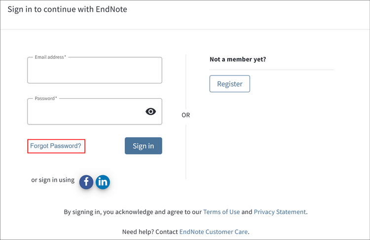 Q:ウェブ版 EndNote のパスワード再設定・変更方法