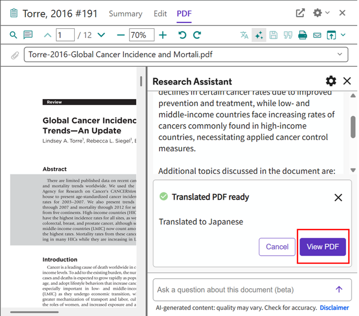 参照:EndNote 2025 新機能:Translate your document で論文 PDF を翻訳しよう