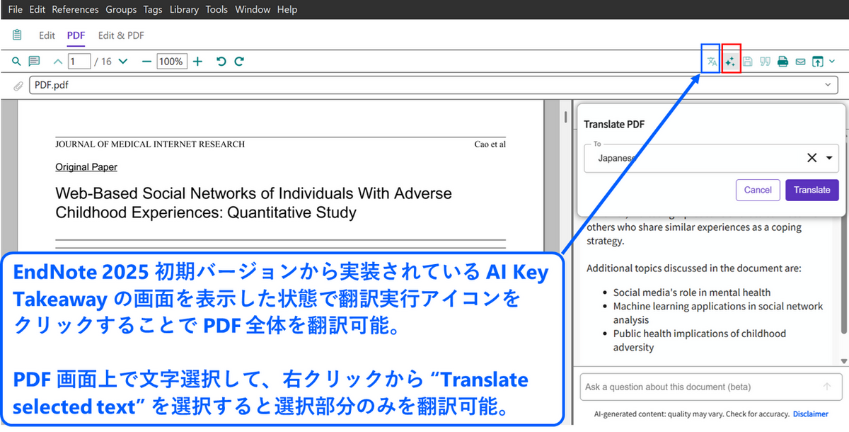 EndNote 2025 新機能:Translate your document で論文 PDF を翻訳しよう