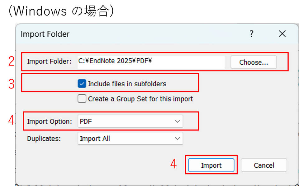 ※Windows のみ(Mac ではデフォルトで階層分けされたフォルダ内の PDF も取り込まれます) -