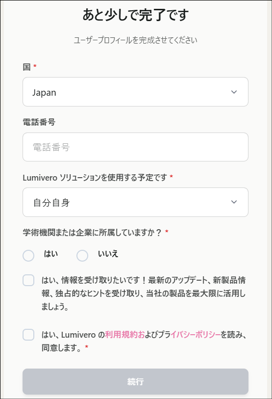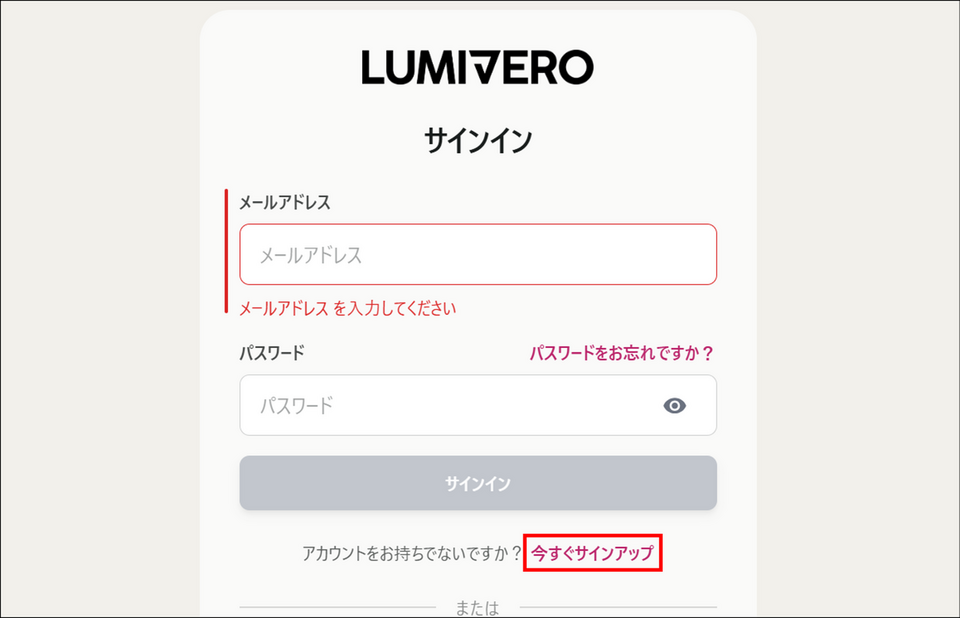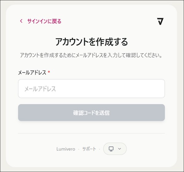 myLumivero のアカウントをお持ちでない場合は、以下の手順でアカウントの作成を行ってください。
