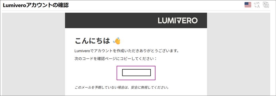 → 入力されたメールアドレス宛に確認コードが記載されたメールが届きます。