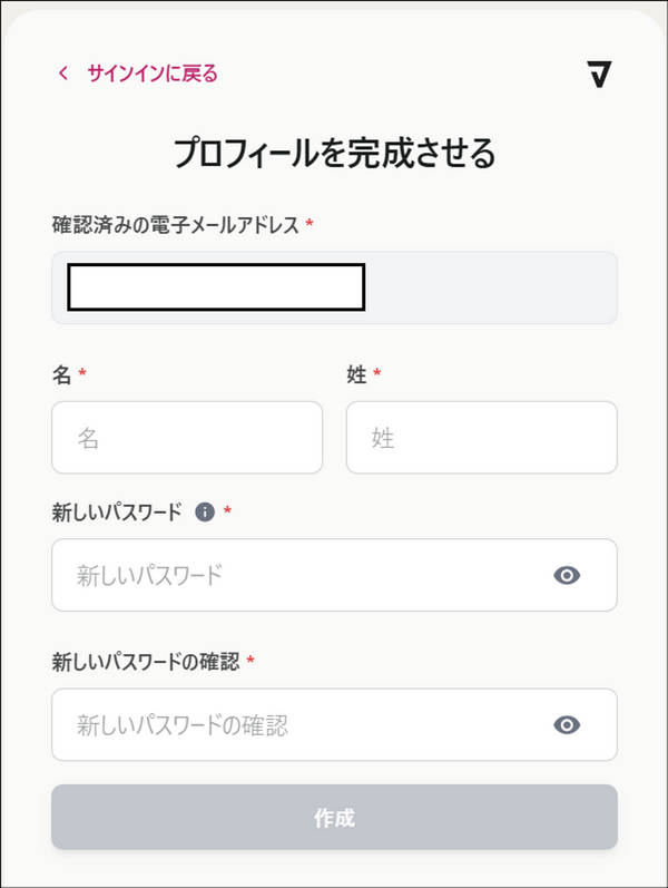 必要項目を入力し [作成] をクリック