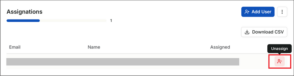 [Assignations] 欄にアカウント情報が既に表示されている場合、右側の [Unassign] のボタンをクリックし現在のアカウント情報を削除