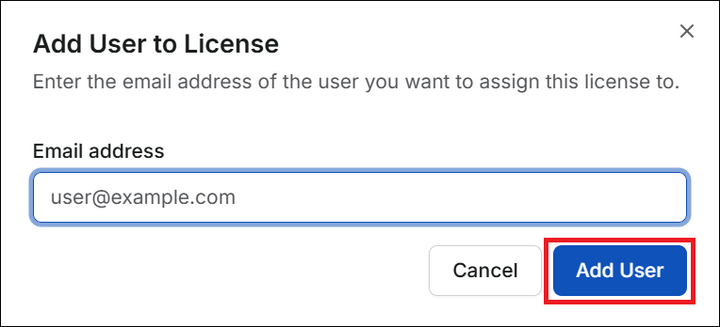 [Email Address] にメールアドレスを入力し、[Add User] ボタンをクリック