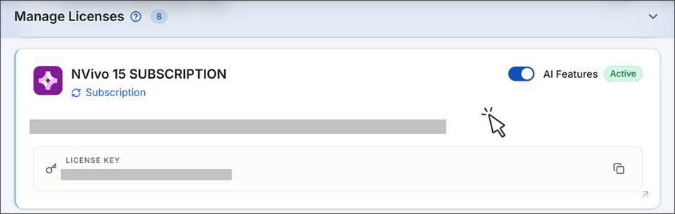 ページ下方 [Manage Licenses] を確認し、表示された NVivo ライセンスをクリック