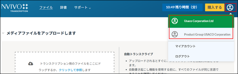 お客様の myLumivero アカウントにサブアカウントが作成されており、購入した文字起こし時間(クレジット)が、現在アクセスしているアカウントとは別のサブアカウントに割り当てられている可能性があります。