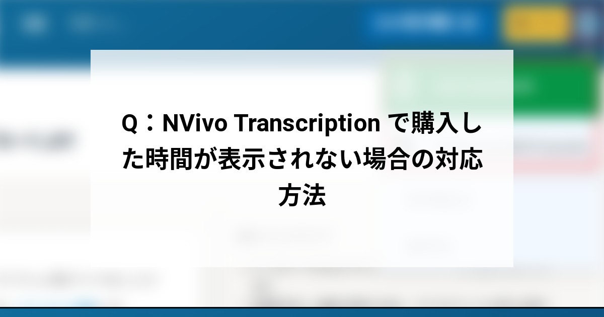 NVivo Transcription で購入した文字起こし時間が画面上に表示されない、またはアクセス時にエラーが表示される場合、いくつかの原因が考えられます。以下の原因と対処法をご確認ください。