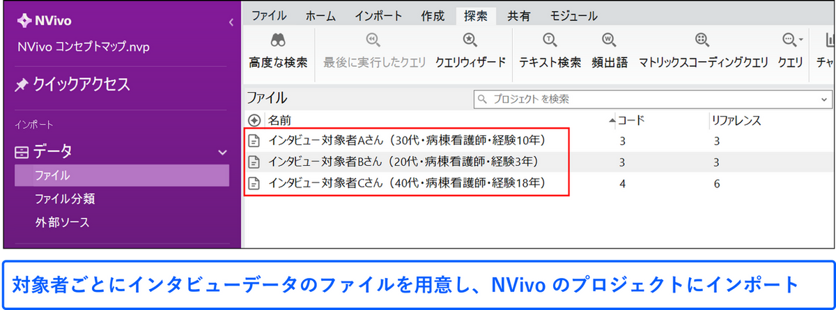 ※なお、このページではNVivo 15 Windows 版を使ってご説明しております。