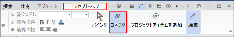 メニューの [コンセプトマップ] タブから[コネクタ] を選択