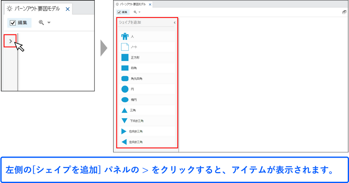 図形をダブルクリックし、テキストとして「バーンアウト」と入力