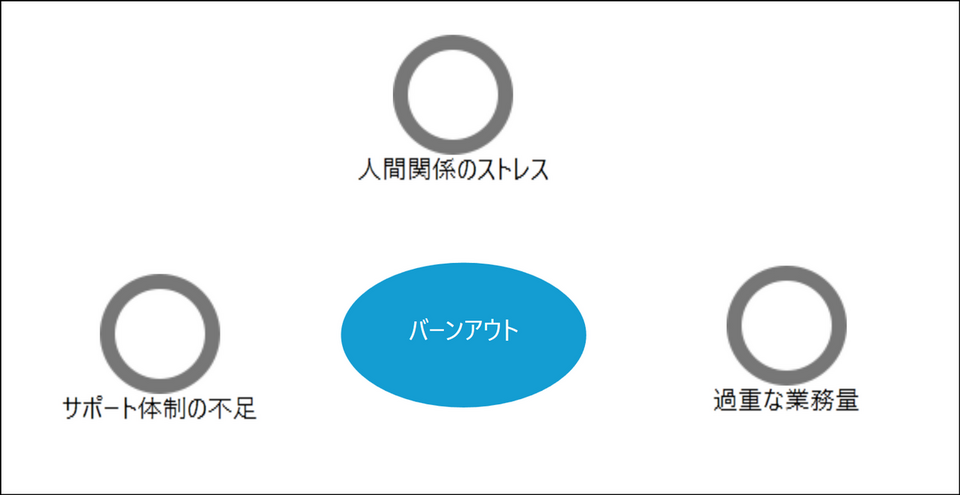 ※ここではあえて「バーンアウト」コードを使わず、中心概念として新しい図形を置いています。どちらでも構いません。