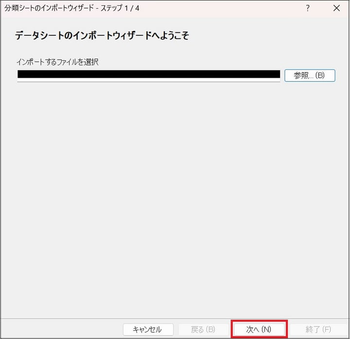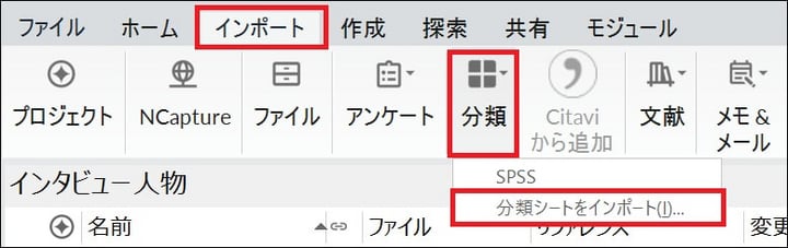 メニュー [インポート] タブ から [分類] → [分類シートをインポート] をクリック