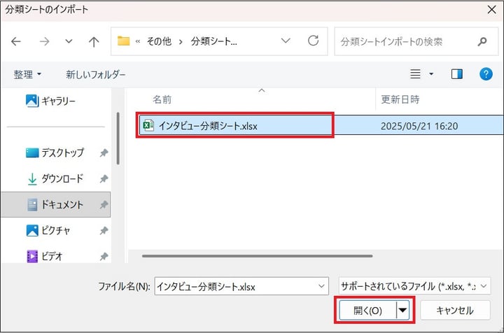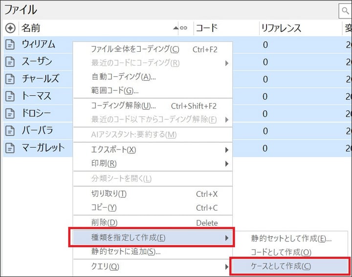 - ファイル名がケース名になります。ファイル名は後で管理しやすいように「回答者A」「ID-001」といった名称にしておくことをおすすめします。