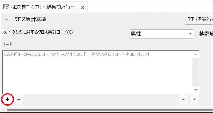 クロス集計基準の [コード] 欄下の [+] をクリック