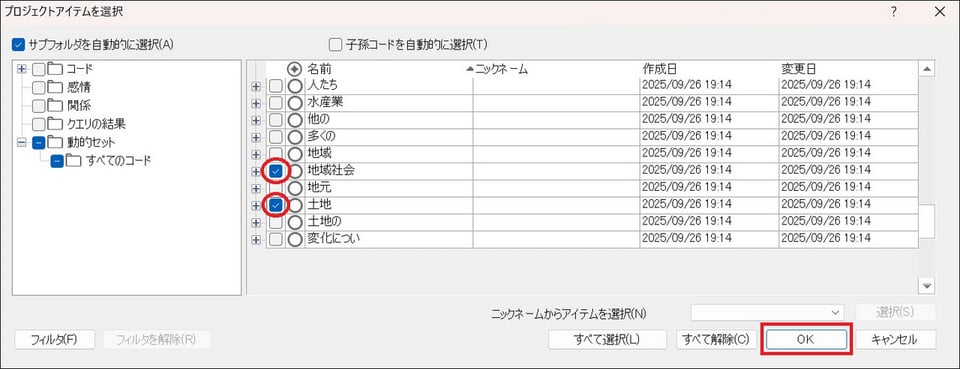 ナビゲーションビューの[ファイル] フォルダを選択し、リストビューにてケースを追加したいインタビューファイルを全選択