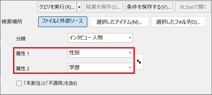[属性1]、[属性2] にてプルダウンメニューから対象とする属性を選択