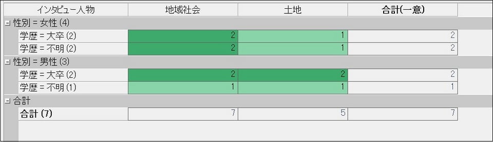 追加した属性情報を活用し、クロス集計を行ってみましょう。