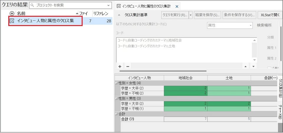 質的なコーディング結果と、量的な属性データを関連付けることで、質的研究に「数」という説得力のある要素を加え、分析の客観性や信頼性を高めることができ、混合研究法の際にも特に有用です。