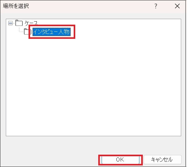 手順 4. で作成したケースフォルダを選択して [OK] をクリック