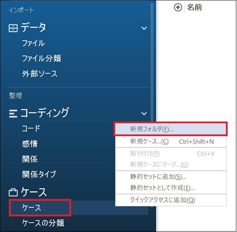 ナビゲーションビューの [ケース] を右クリックし、[新規フォルダ] を選択