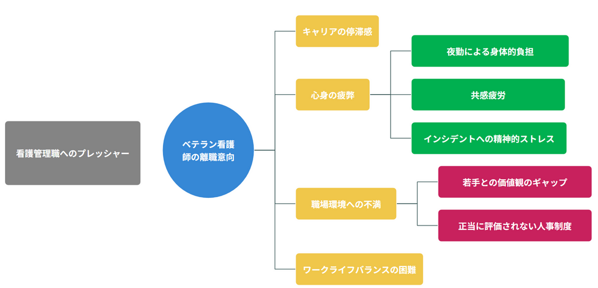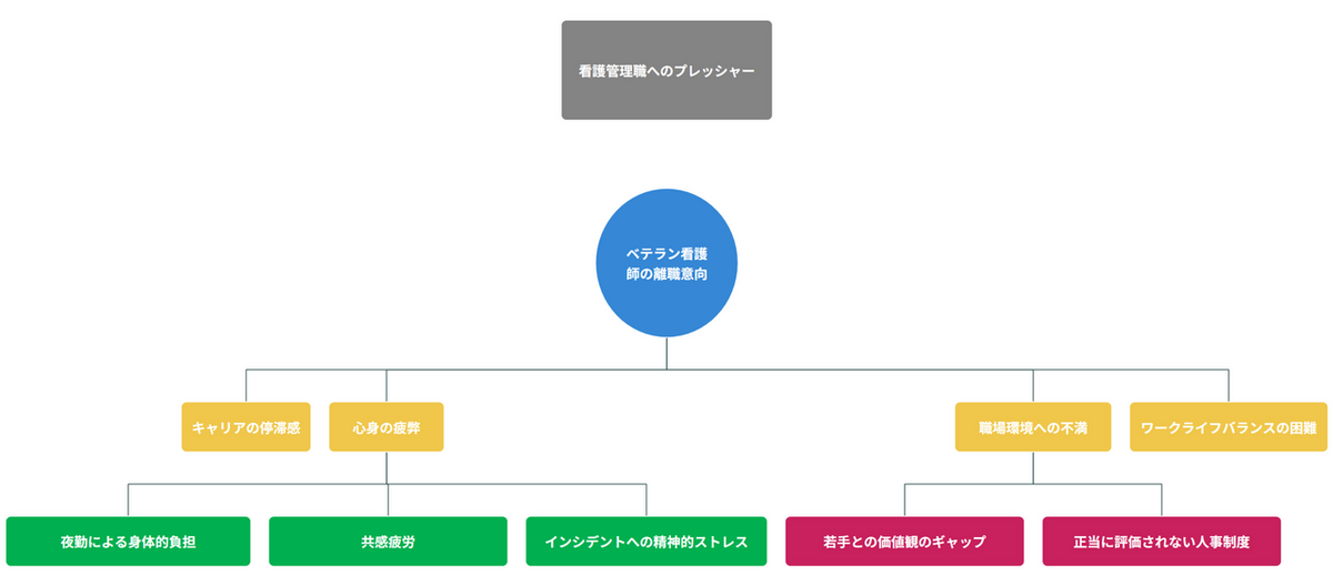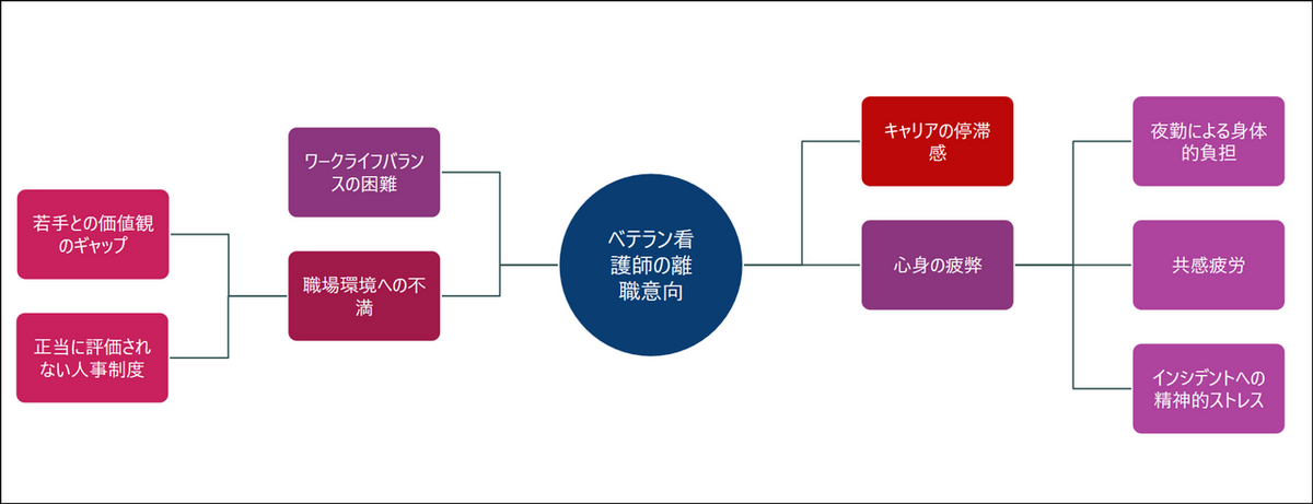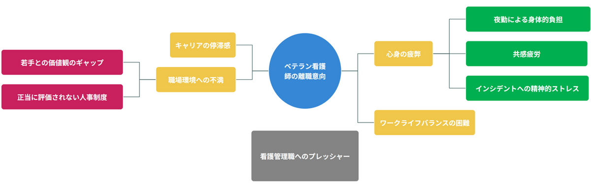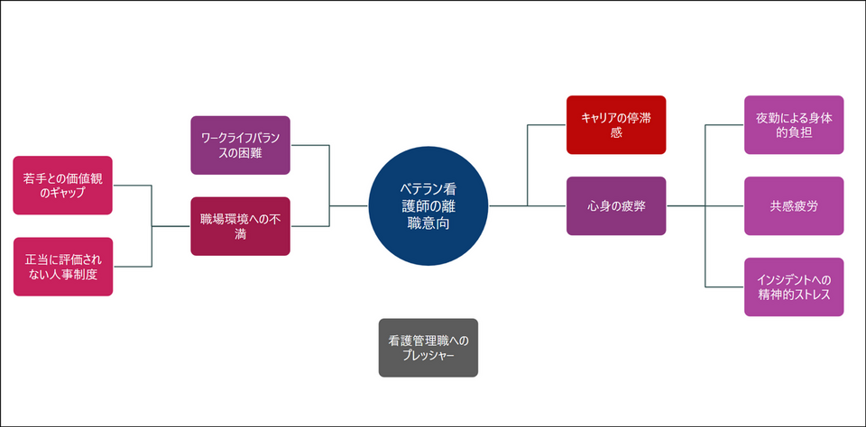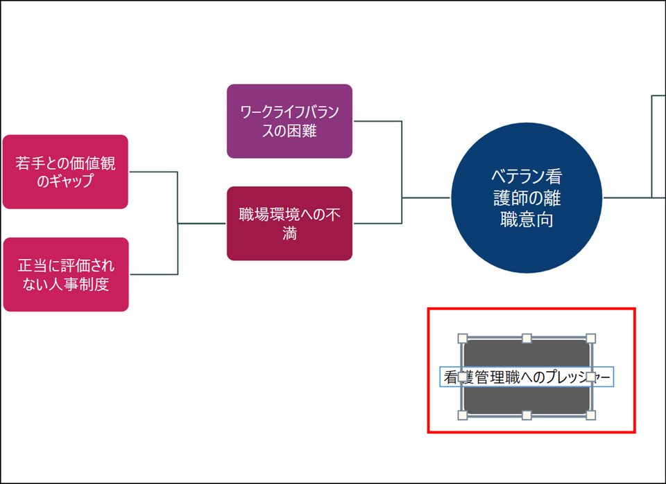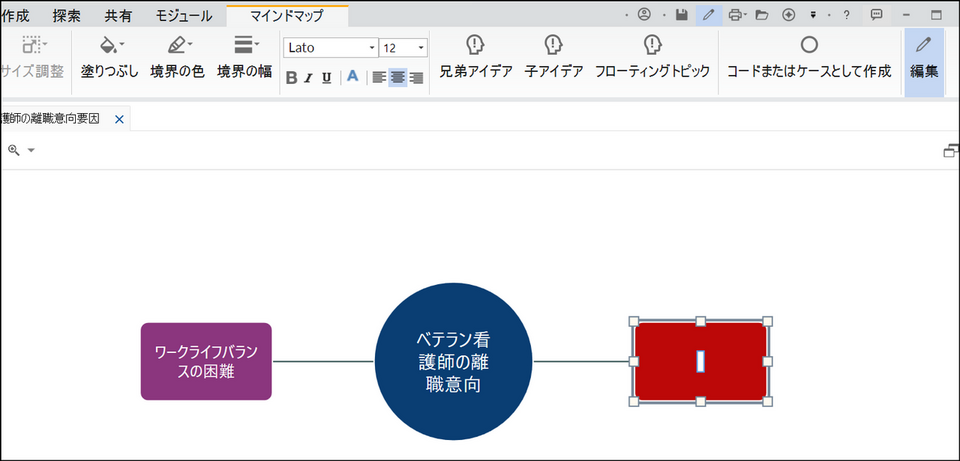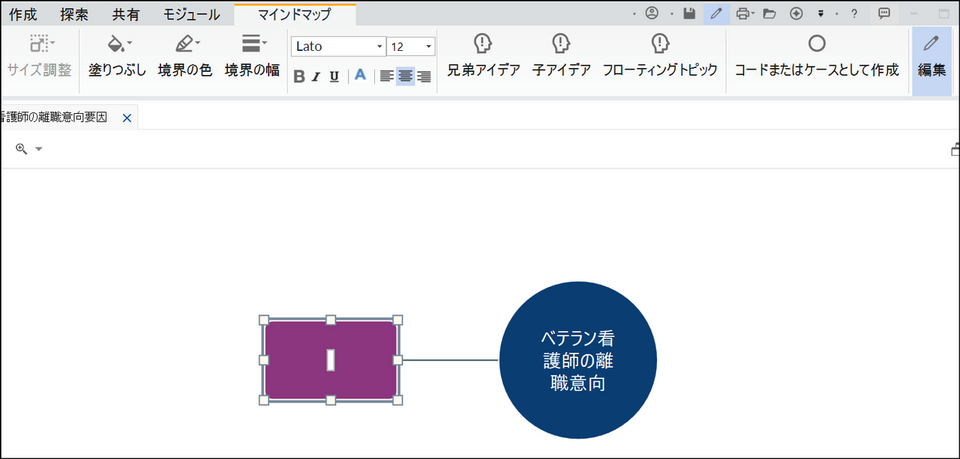 中心となる主要なアイデアに「ベテラン看護師の離職意向」と入力