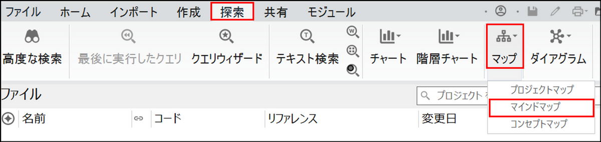 メニューの [探索] タブから[マップ] > [マインドマップ] を選択