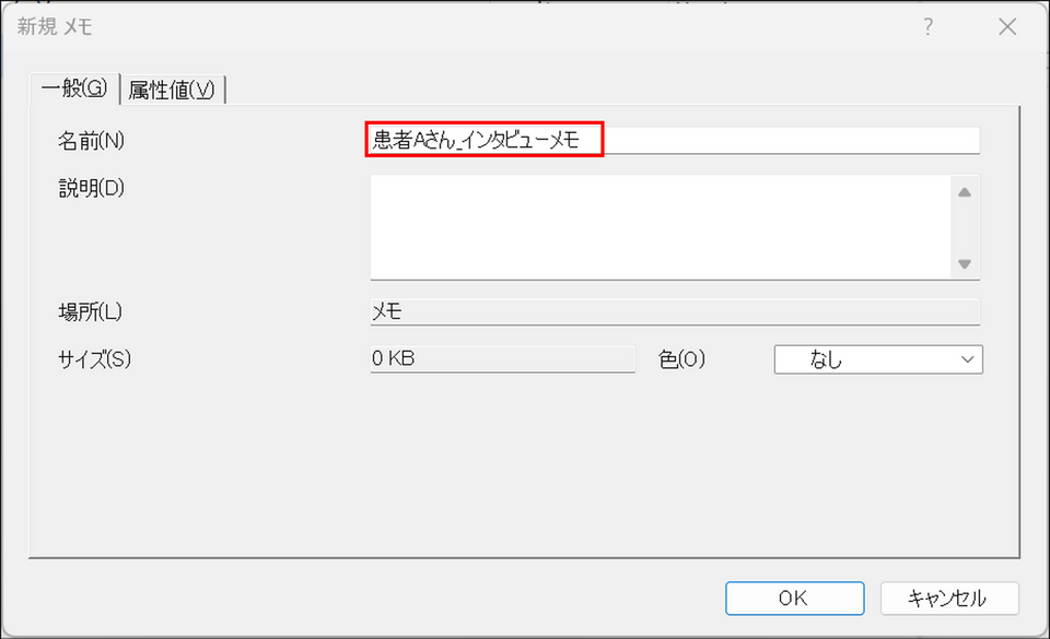 ダイアログボックスでメモの名前(と任意で説明)を入力し、OK をクリックします。