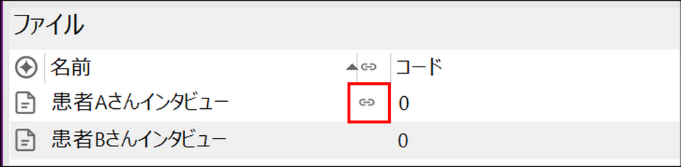 また、メモがリンクされたアイテム(ファイル・コード・ケースなど)には、リストビュー上にリンクアイコンが表示されます。このアイコンにより、どのアイテムにメモが紐づいているかを一覧上でひと目で確認できます。