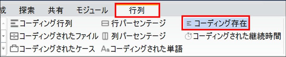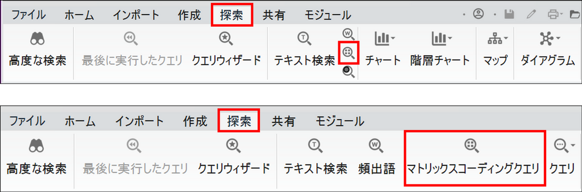 メニューの [探索] タブから[マトリックスコーディングクエリ] をクリック