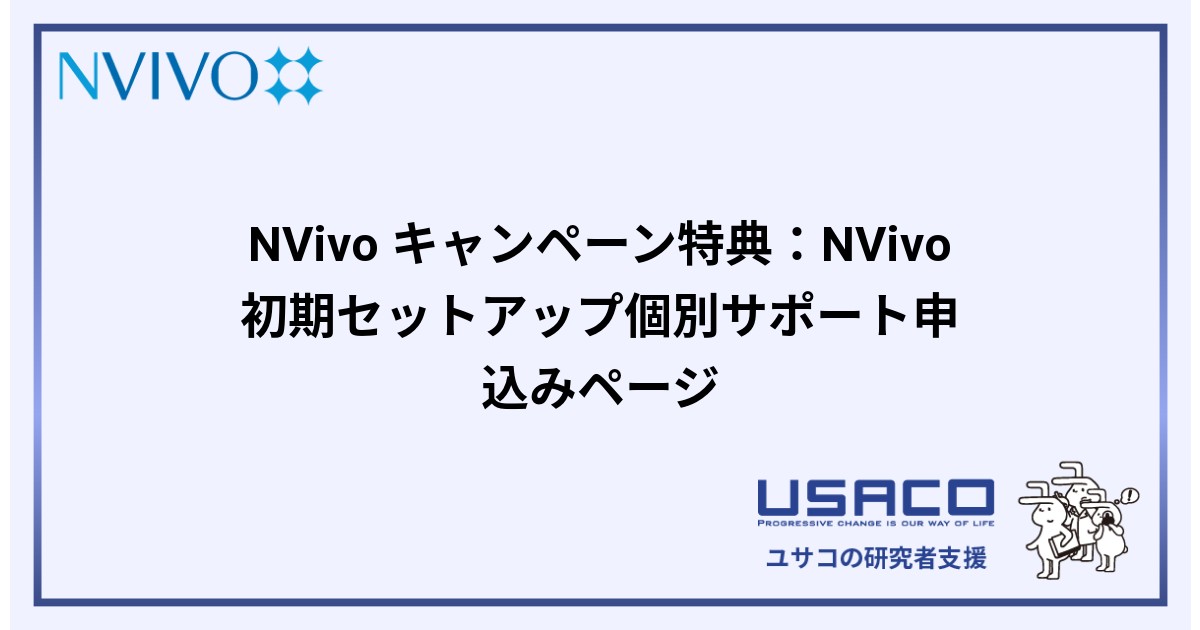 この度は、NVivo をご購入いただき、誠にありがとうございます。製品の初期設定におけるご不安を解消し、スムーズに分析を始めていただくため、ご購入者様限定の「個別初期セットアップサポート」を無料でご提供します。専門スタッフが丁寧にサポートしますので、ぜひご活用ください。