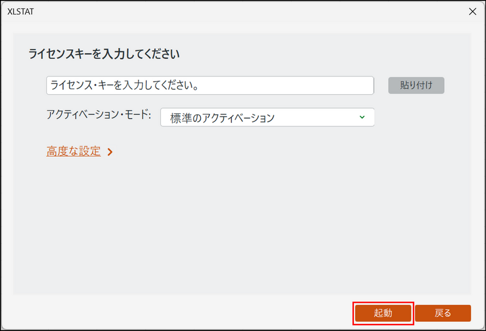 ライセンスキーを入力し、[起動] ボタンをクリック