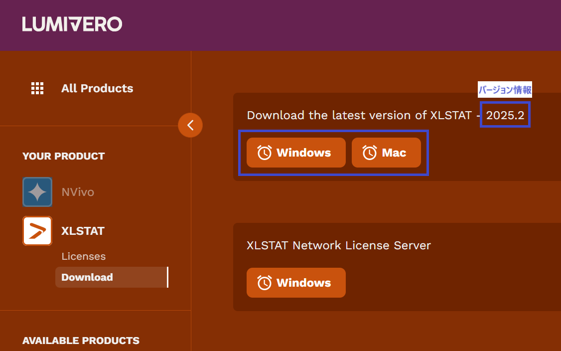 XLSTAT のバージョンを確認し、更新する方法は以下の通りです。