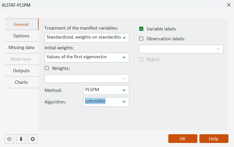 新しいドロップダウンメニューから、Lohmöller 法と Hanafi-Wold 法の2つのPLS-PMアルゴリズムを選択できます。