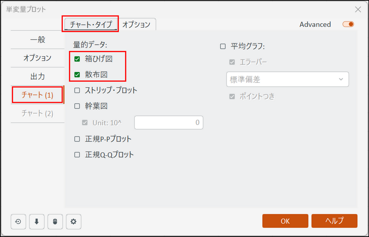 [チャート(1)] > [チャート・タイプ] タブに切り替え、下記項目にチェックを入れます。