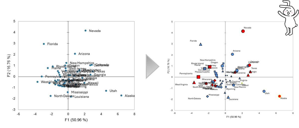 XLSTAT:主成分分析(PCA)チャートを見やすく整える(ラベル配置・色分け・サイズ調整)