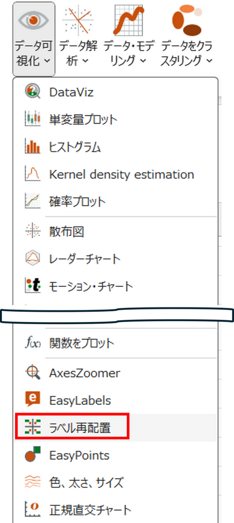 オブザベーションチャートをクリックし、[データ可視化] >[ラベル再配置] を選択します。