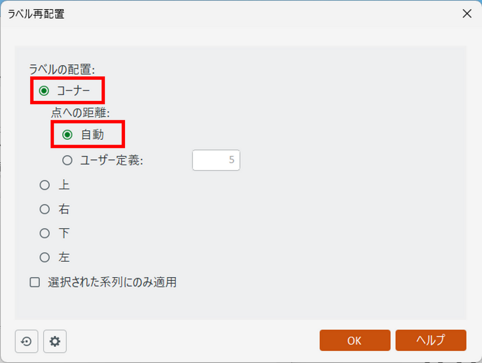 ①ラベルの重なりを自動で解消する(ラベル再配置)