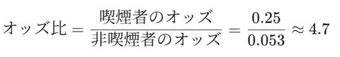 - 非喫煙者のオッズ: 5÷95≒0.053