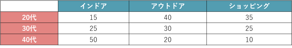 例:「年齢層」と「休日の主な過ごし方」の関係