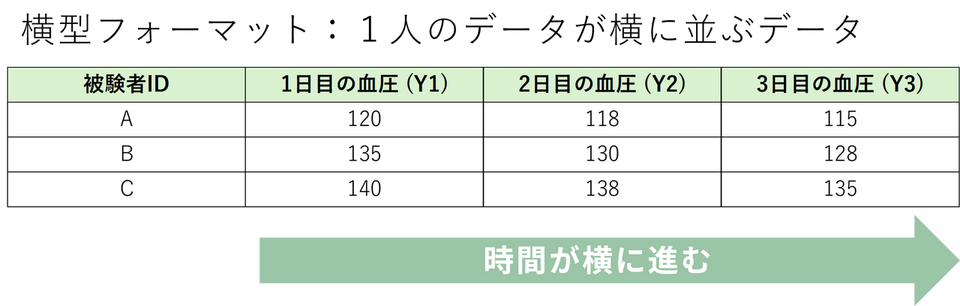 - 反復測定分散分析に必要なデータ形式(縦型と横型)