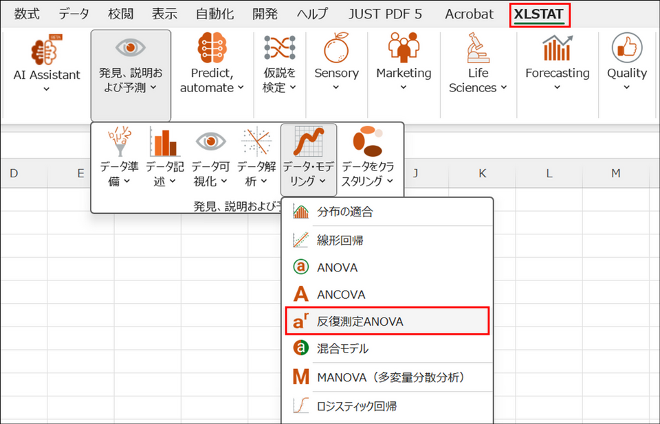 - XLSTAT で反復測定分散分析を実行する手順