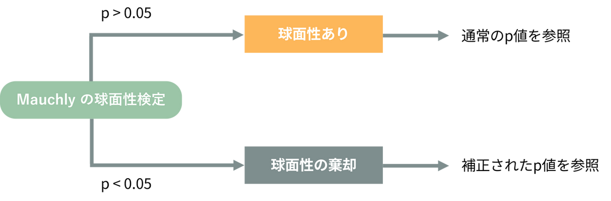 - p > 0.05 の場合(球面性あり):