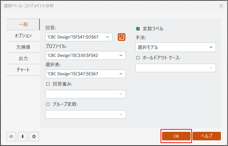 オプション画面が表示されるので、そのまま [OK] をクリックすると、入力されたデータをもとに分析が開始されます。