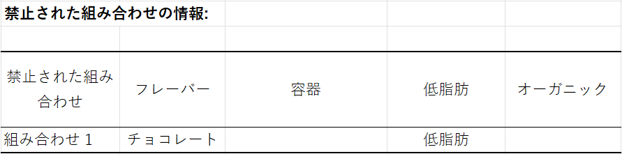 2番目の表(禁止された組み合わせの情報)は、禁止された組み合わせの要約表です。