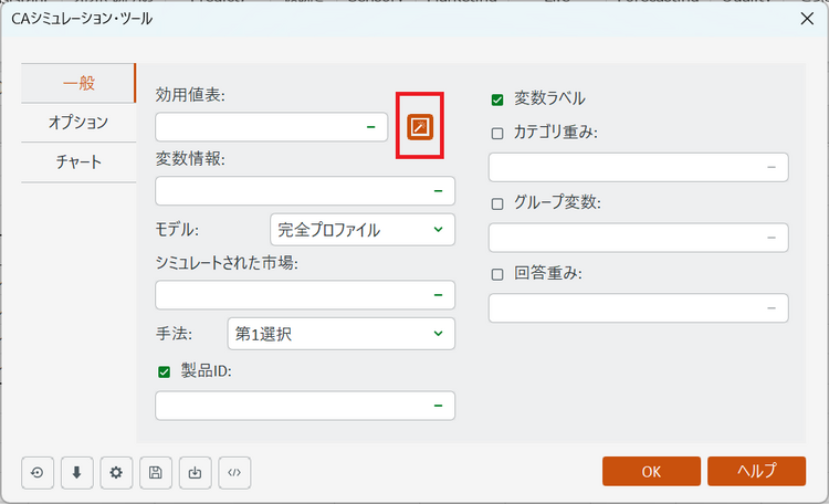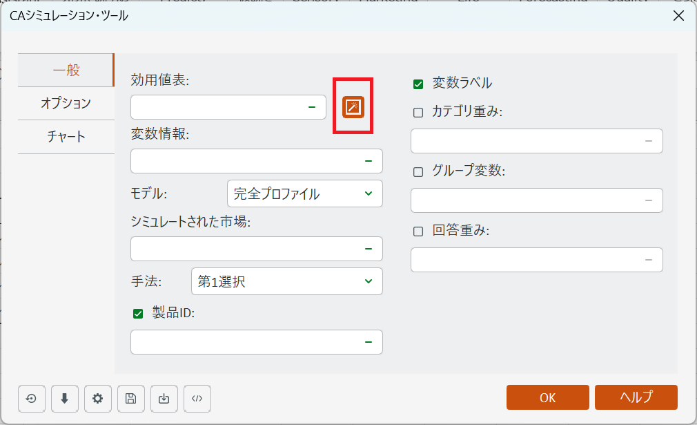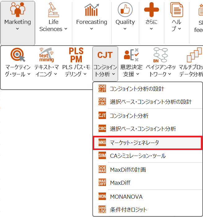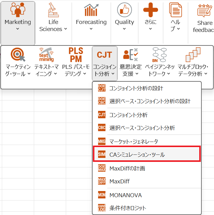 [Marketing] > [コンジョイント分析] > [CA シミュレーション・ツール] を選択します。